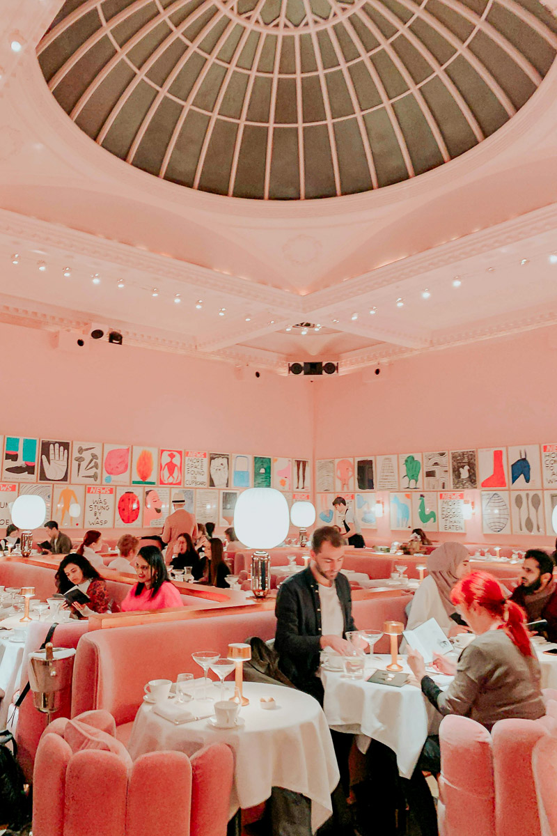 Ilkikurisesti piirrostaiteella koristeltu Michelin-tähtiravintola Sketchissä pääsee nauttimaan iltapäiväteen pinkissä salissa, pinkeillä samettipenkeillä istuen. Shown varastaa kuitenkin vessa, jonka futuristisen munakopit näyttävät siltä kuin ne olisi suunniteltu scifi-elokuvaa varten.