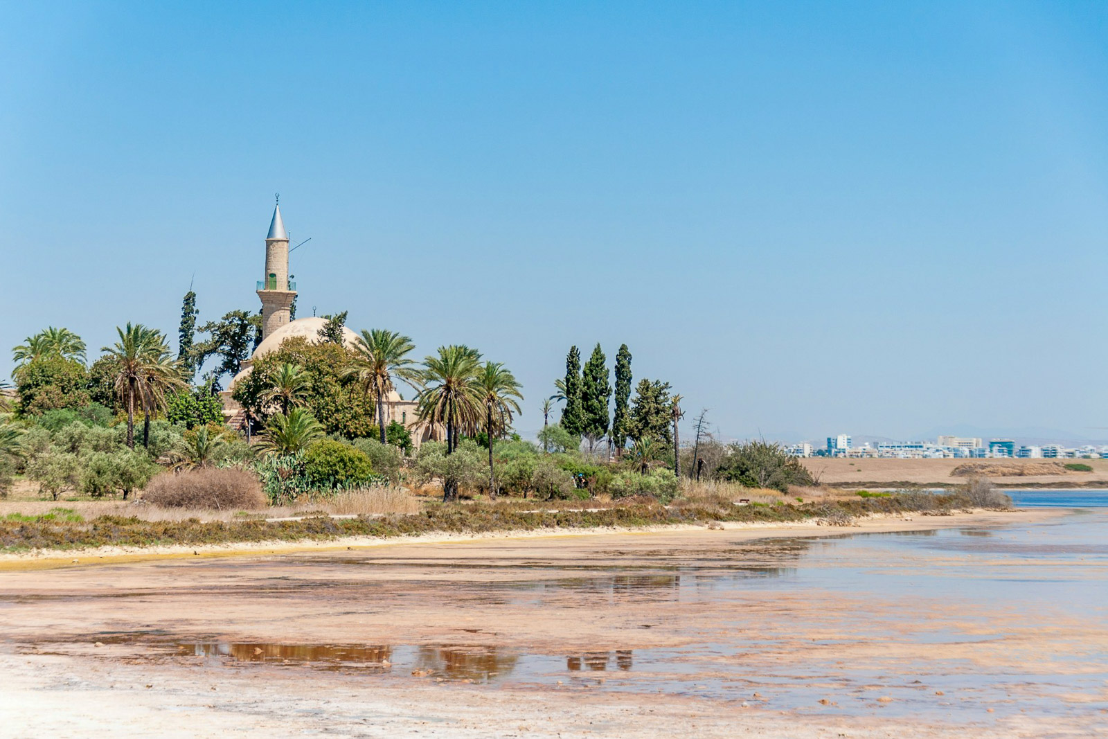Heti Larnakan keskustan vieressä on vaikuttavan kokoinen suolajärvi, jonka rannalla sijaitsee äärimmäisen pyhä paikka muslimeille. Hala Sultan Tekke -moskeijan sanotaan sijaitsevan paikalla, jossa profeetta Muhammedin imettäjä Umm Haram putosi muulin selästä ja kuoli. Rouva oli mukana arabien valloitusretkellä.