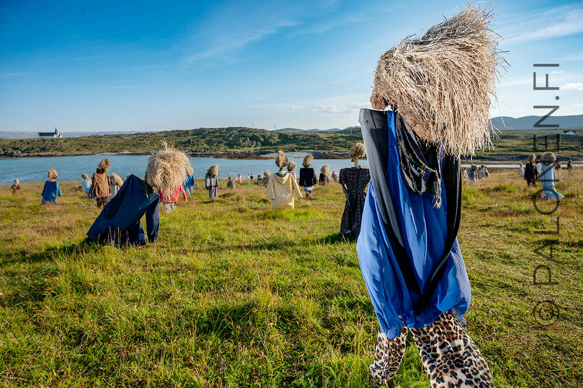 Kun jatketaan vieläkin pohjoisemmaksi, Gamvikin kylässä vastaan astelee turvepäisten hahmojen joukko. Ne muistuttavat Suomussalmen ympäristötaideteosta Hiljainen Kansa, eikä ihme: myös Standhaftige folk on taiteilija Reijo Kelan ideoima. Suomeksi teoksen nimen voisi kääntää muotoon “Vankkumaton väki”.