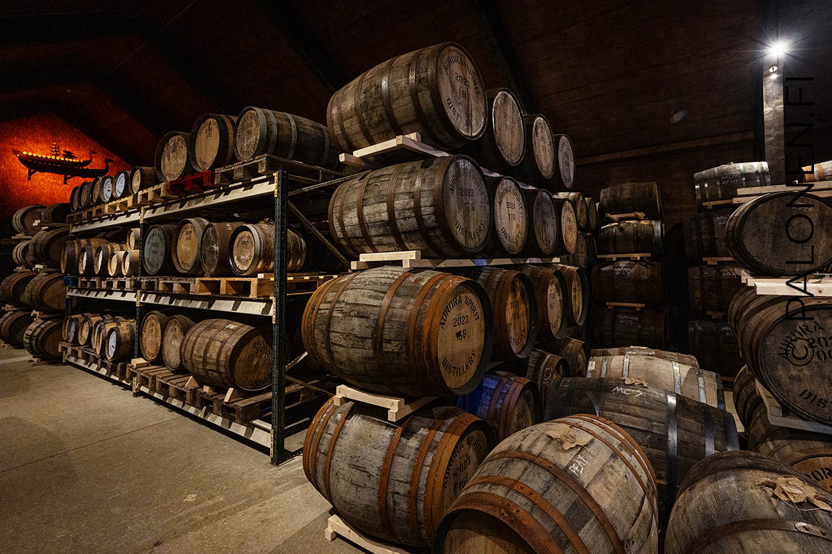 Aurora Spiritissä järjestetään tunnin kestäviä tislaamokierroksia. Niillä opitaan, että tynnyrivaraston huumaava tuoksu johtuu alkoholin hitaasta haihtumisesta, jota Irlannissa kutsutaan “enkelien osuudeksi” mutta täällä – kuinkas muuten – Odinin osuudeksi. Varastossa voi bongailla julkkisten nimikkotynnyreitä; omaa erikoisviskiään kypsyttävät muun muassa Valtteri Bottas ja norjalaisyhtye A-ha.