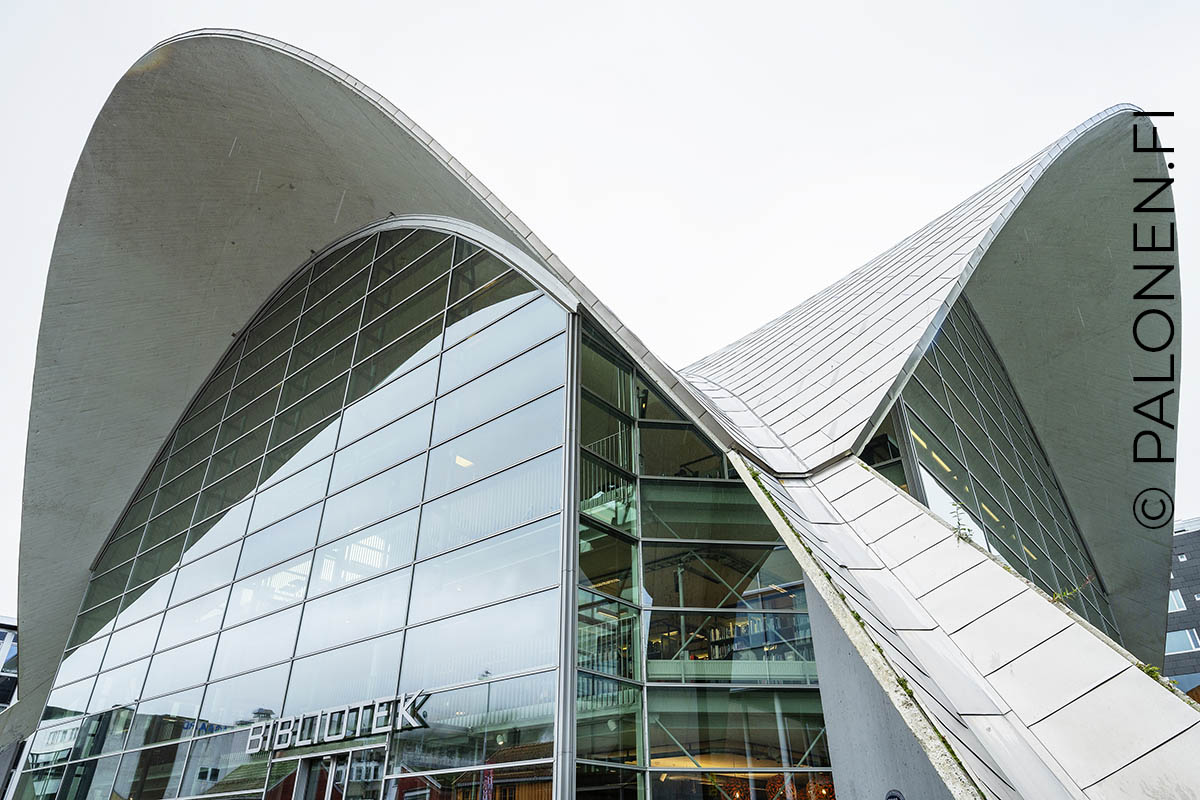Näkemisen arvoinen rakennus aivan keskustassa myös on ehtaa wau-arkkitehtuuria edustava Tromssan kirjasto.