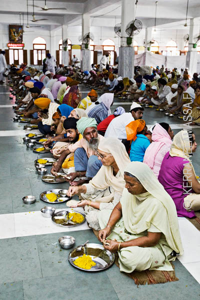 Lounas, hernesoppaa muistuttava dhal-linssikeitto, on taivaallista. ”Miksei olisi, sehän on Jumalan ruokaa!” toteaa vieressä istuva 45-vuotias Tejinder Pal Singh. ”Yhdessä aterioimalla kunnioitamme yhtä sikhiläisyyden tärkeimmistä periaatteista: kaikki ihmiset ovat tasa-arvoisia uskonnosta, ihonväristä tai vauraudesta riippumatta.”